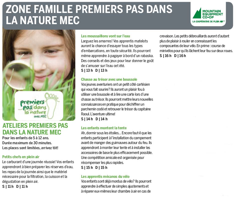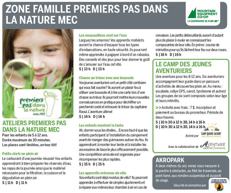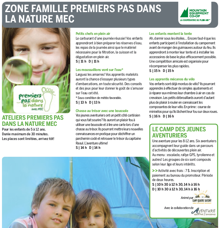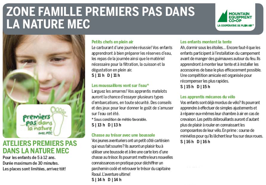 >> Zone famille Premiers pas dans la nature MEC Montréal | Québec