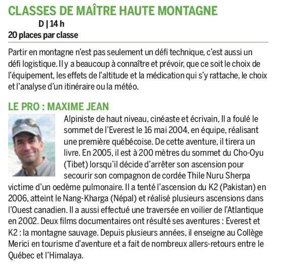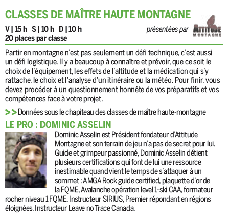 >> Classe de maître haute montagne ATTITUDE MONTAGNE Montréal