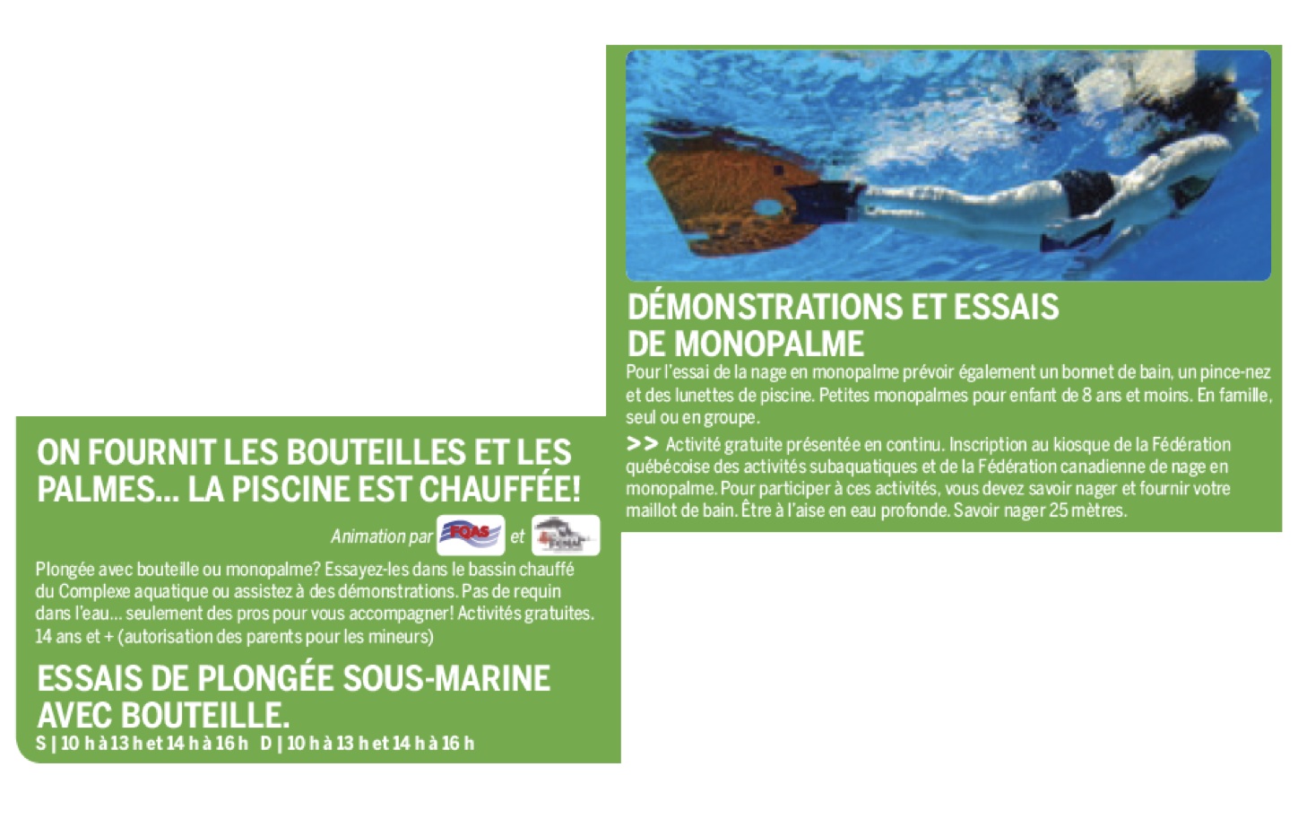 >> Plongée sous-marine avec bouteille et monopalme… au chaud! Montréal